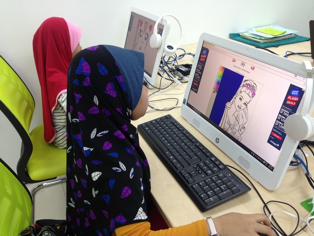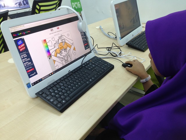 Kelas ini dianjurkan untuk memberi peluang kepada peserta untuk menggunakan kreativiti di dalam diri masing-masing untuk mewarna watak animasi kegemaran mereka. www.4coloring.com telah digunakan sebagai bahan material didalam kelas mewarna ini. Proses mewarna yang mudah dan menghiburkan boleh mengukuhkan lagi kreativiti didalam diri peserta. Ia bertujuan untuk memberi pengetahuan kepada semua peserta bahawa kegunaan internet dapat juga digunakan untuk perkara yang lain melalui kelas ini.