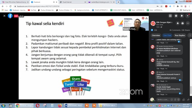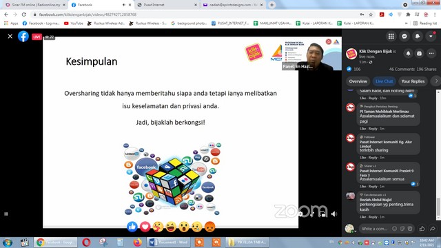 Tujuan program ini diadakan adalah untuk memberi pendedahan kepada pengguna mengenai perkara yang dimaksudkan dengan terlebih kongsi serta risiko dan impak terlebih kongsi. Seramai enam orang peserta telah menyertai program kali ini. Pada akhir program, peserta dapat mengetahui tanggungjawab untuk menjadi pengguna yang lebih baik di media sosial . Diharapkan dengan aktiviti seperti ini kita dapat mengurangkan amalan tidak baik dalam kalangan pengguna media sosial.