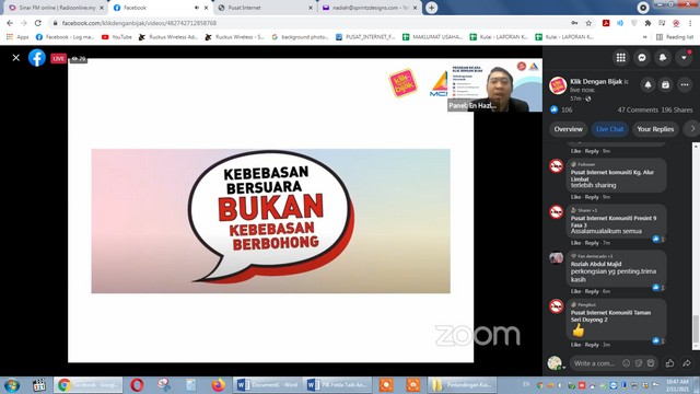 03 November 2021 | Aktiviti TerkiniPada 02 November 2021 , Pihak Pusat Ekonomi Digital Felda Taib Andak telah mengadakan Program Klik Dengan Bijak yang bertajuk Terlebih Kongsi. Selama Program ini berlangsung peserta telah diberi penerangan menggunakan slaid berkaitan dengan perkongsian di facebook atau media sosial. Program ini telah dijalankan selama setengah jam bermula pada jam 10.00 pagi sehingga 11.30 pagi.