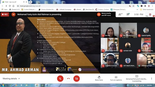 30 Januari 2021 | Aktiviti TerkiniPada 29 Januari 2021 ,Pusat Ekonomi Digital Komuniti Felda Taib Andak telah mengikuti satu webinar anjuran Universiti Teknologi Mara (UITM) yang bertajuk ‘Trends & Challenges in Leadership Perspective Beyond Post Pandemic’. Program ini telah disampaikan oleh Pengurus Besar Hotel UITM Shah Alam, Dato Mohd Onn Rashdi Abd Patah dan dibantu oleh Encik Mohamad Qairul Syafiq Bin Perang sebagai Moderator.Para peserta yang terlibat telah didedahkan dengan cabaran dunia pekerjaan ketika pandemic Covid-19 bagi seorang pekerja. Program ini telah berlangsung selama tiga jam bermula pada jam 2.30 petang sehingga 5.30 petang.