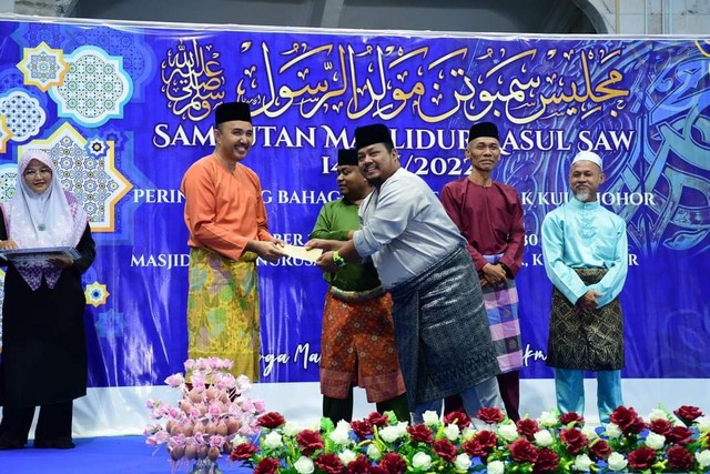 30 Oktober 2022 | Aktiviti TerkiniSambutan Maulidur Rasul 1444H/2022 telah berlangsung dengan meriah. Sambutan ini telah berlangsung dari jam 7.30 pagi sehingga 11 pagi dengan kehadiran VIP jemputan iaitu YB Dato' Jafni bin Md Shukor ADUN Bukit Permai. Pelbagai program berbentuk kerohanian mahupun kemasyarakatan seperti selawat, berzanji, perarakan dan lain-lain lagi bagi menzahirkan rasa syukur umat Islam kepada Allah SWT.