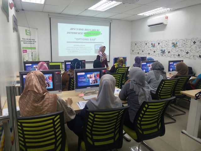 Kelas Adobe Photoshop ini berlangsung dengan sangat meriah. Kelas ini telah berlangsung dari jam 9.00 pagi hingga 1.00 petang dengan kehadiran 15 orang peserta yang kebanyakannya dari kalangan usahawanan. Objektif kelas ini diadakan adalah untuk mengajar usahawan cara untuk mengedit gambar menggunakan aplikasi Adobe Photoshop dengan menarik dan dapat menarik minat pembeli.