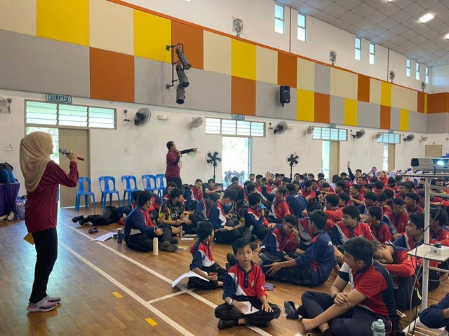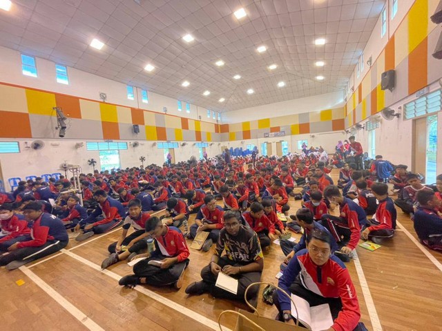 16 Ogos 2023 | Aktiviti TerkiniProgram Taklimat Klik dengan Bijak ini berlangsung dengan baik dan sangat meriah. Program ini telah berlangsung dari jam 8.00 pagi sehingga 10.00 pagi dengan kehadiran lebih 300 orang pelajar Tingkatan 1 hingga 3 dan juga pelajar Peralihan. Program dimulakan dengan pengenalan Pusat Ekonomi Digital dan selepas itu slot Klik Dengan Bijak iaitu Pengantunan dalam Talian (Cyber Grooming) dan Kawalan Kendiri. Objektif taklimat ini diadakan adalah untuk memberi kesedaran tentang isu-isu dalam talian pada masa kini.