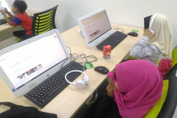 Bertujuan mendedahkan kepada adik-adik tentang penggunaan pengalih bahasa yang pelbagai di atas talian, adik-adik juga belajar dan mendengar cara sebutan perkataan yang telah dialihkan dari bahasa Melayu kepada bahasa Inggeris dan bahasa2 lain.