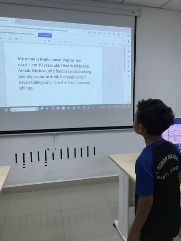 15 Ogos 2023 | Aktiviti TerkiniKelas Soft Skill : Introducing Yourself ini berlangsung dengan sangat baik. Kelas ini telah berlangsung dari jam 3.00 petang sehingga 4.00 petang dengan kehadiran seorang peserta yang begitu berminat dengan Bahasa Inggeris.