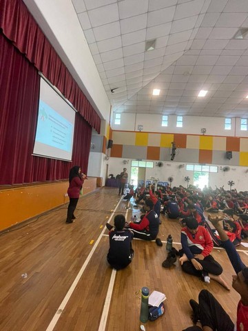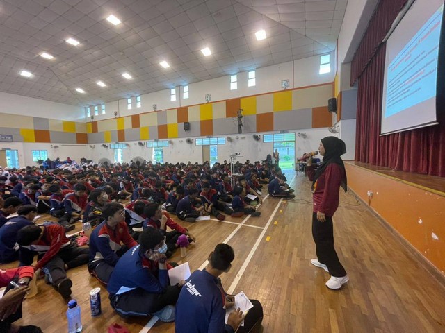 16 Ogos 2023 | Aktiviti TerkiniProgram Taklimat Klik dengan Bijak ini berlangsung dengan baik dan sangat meriah. Program ini telah berlangsung dari jam 8.00 pagi sehingga 10.00 pagi dengan kehadiran lebih 300 orang pelajar Tingkatan 1 hingga 3 dan juga pelajar Peralihan. Program dimulakan dengan pengenalan Pusat Ekonomi Digital dan selepas itu slot Klik Dengan Bijak iaitu Pengantunan dalam Talian (Cyber Grooming) dan Kawalan Kendiri. Objektif taklimat ini diadakan adalah untuk memberi kesedaran tentang isu-isu dalam talian pada masa kini.